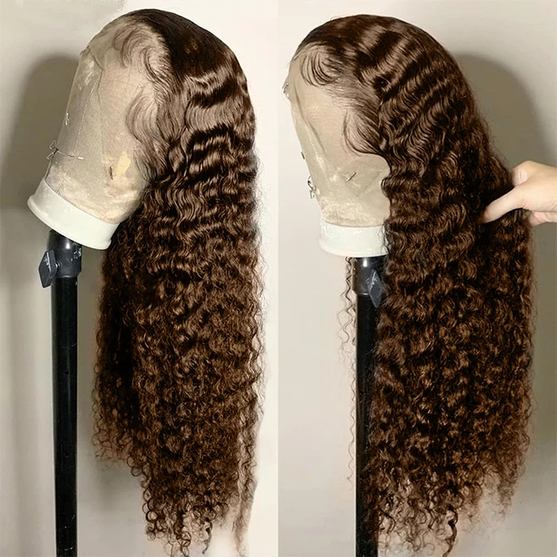 Chocolate Brown 13x6 13x4 Deep Water Wave Lace Front Wigs Human Hair For Women Pre Plucked #4 Colored Curly Lace Front Wigs